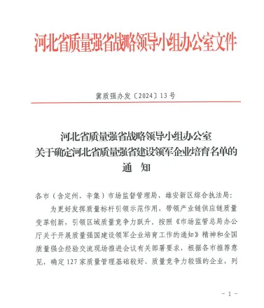 近日,河北省質(zhì)量強(qiáng)省戰(zhàn)略領(lǐng)導(dǎo)小組發(fā)布通知,河北滄海核裝備科技股份有限公司入選河北省質(zhì)量強(qiáng)省建設(shè)領(lǐng)軍企業(yè)培育名單,這也是滄海核裝獲得政府質(zhì)量獎(jiǎng)后獲得的又一質(zhì)量建設(shè)領(lǐng)域的榮譽(yù)資質(zhì)。
